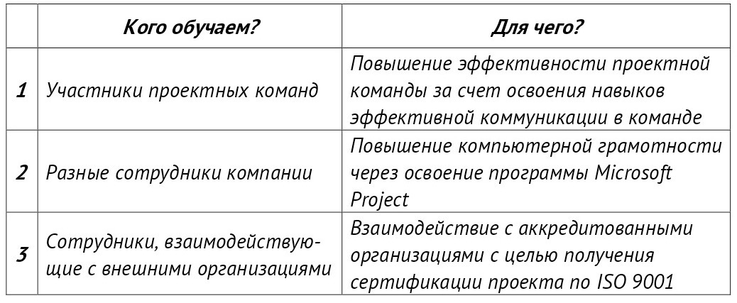 В рабочих тетрадях и презентациях мы многократно цитировали выдержки из этого стандарта, а далее каждый из этих стандартов прорабатывали в упражнениях, кейсах и т. д. Таким образом, к концу двухдневного тренинга участники выучили стандарт близко к тексту. А сам тренинг по своей структуре на 100 % соответствовал внутренним процессам, которые заказчик хотел внедрить. В итоге один из отзывов так и звучал — «Нам сделали тренинг, который на 100 % про нас».